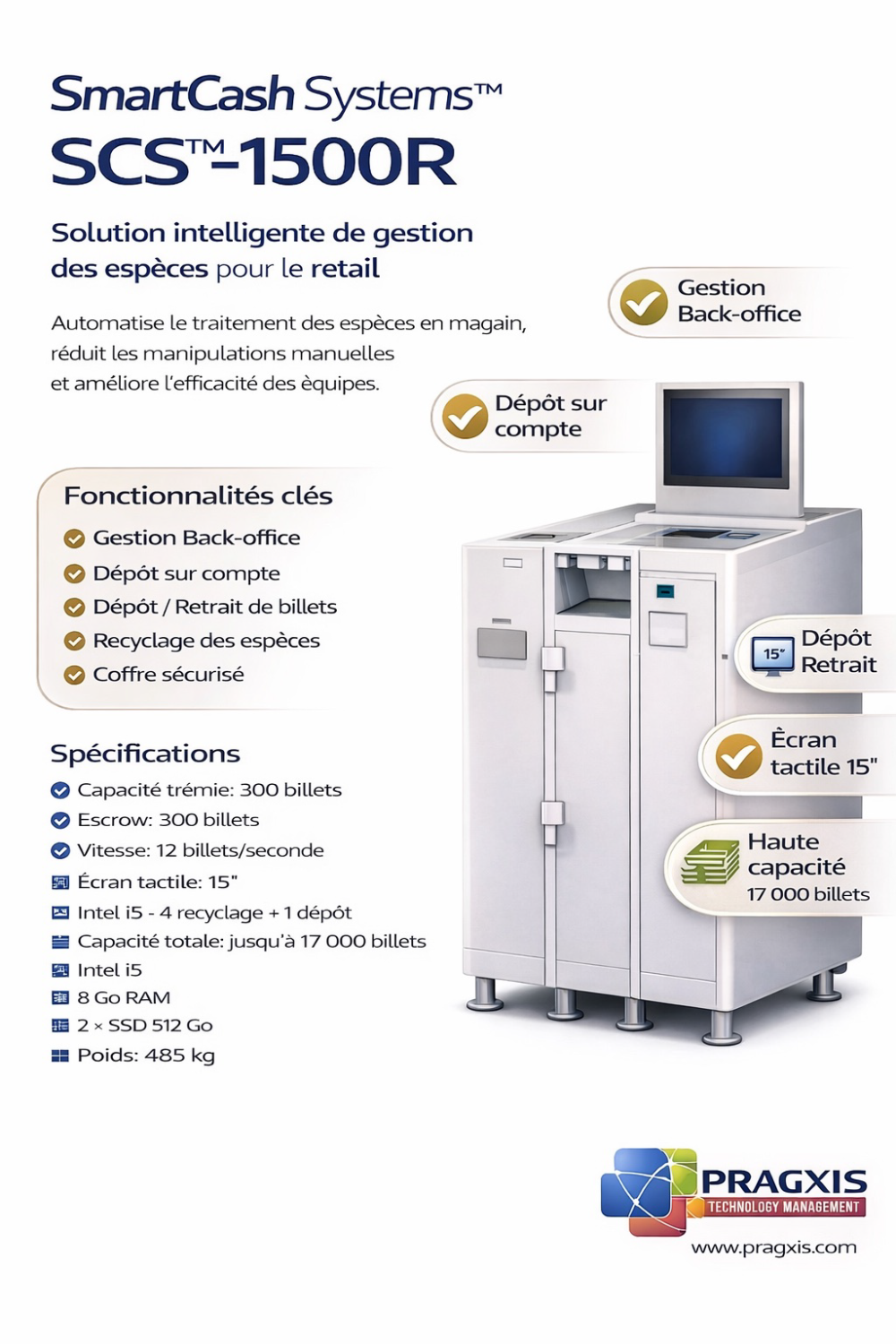 Reinvent the way you manage cash with SmartCash Systems™ SCS™-1500R for Retail chains and Petrol Stations.
